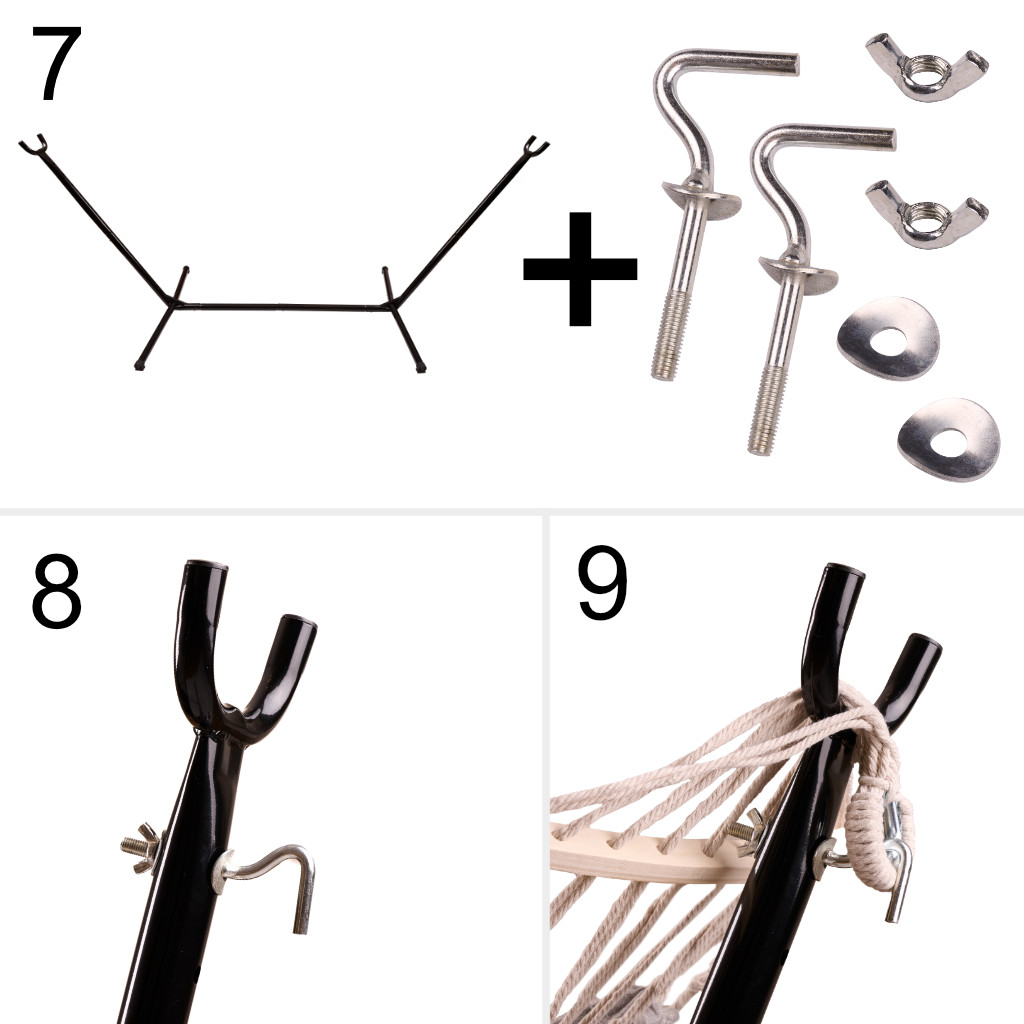 • System Easy-In (Drewniany drążek): Zastosowanie poprzecznych drążków sprawia, że hamak nie „zwija się” w kokon. Wchodzenie i wychodzenie jest stabilne i bezpieczne – idealne również dla seniorów.