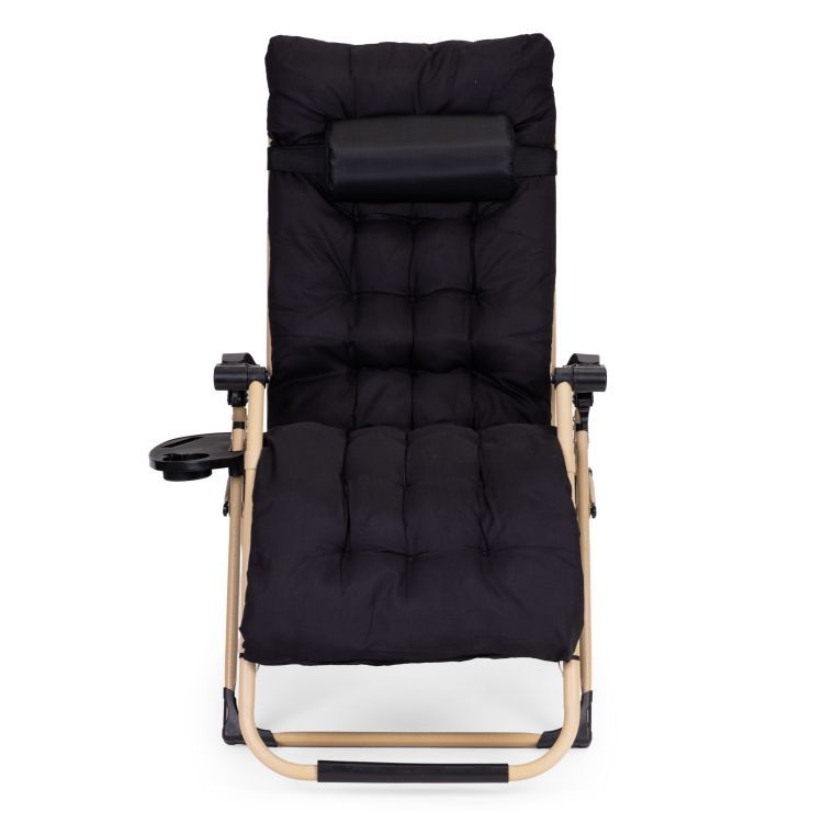 Leżak ogrodowy MultiGarden Zero-Gravity – Luksusowy relaks z poduszką | Czarny ze złotą ramą