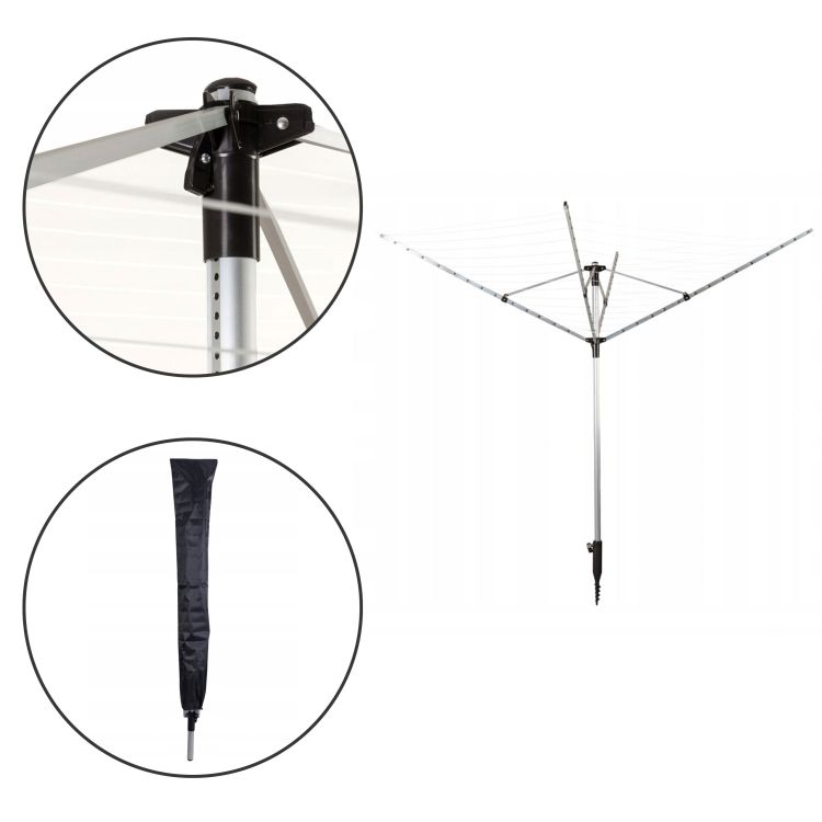 Suszarka ogrodowa MultiGarden 60m – Aluminiowa konstrukcja obrotowa | Zestaw ze świdrem i pokrowcem
